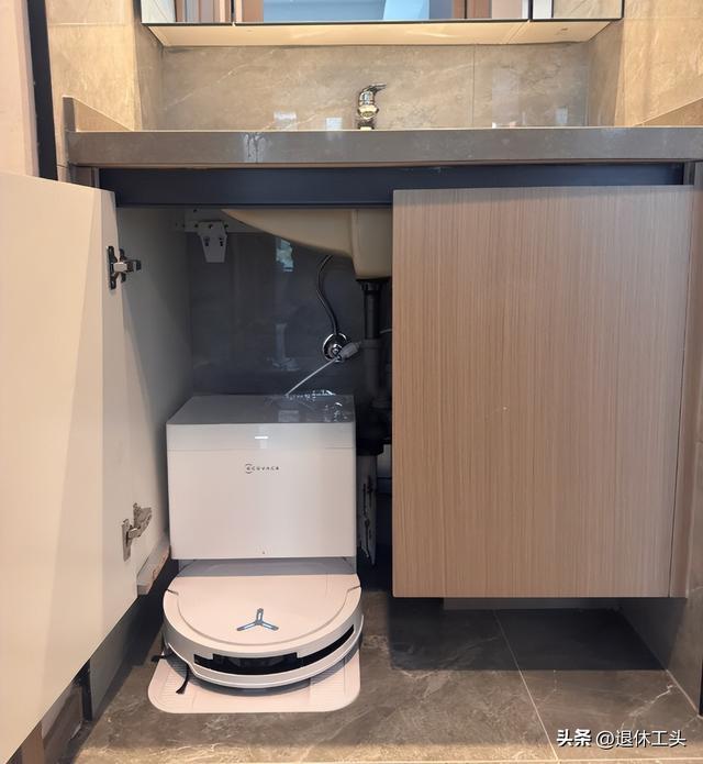现在很多扫地机器人都是自带上下水的,在浴室柜里面预留好上下水和插座,